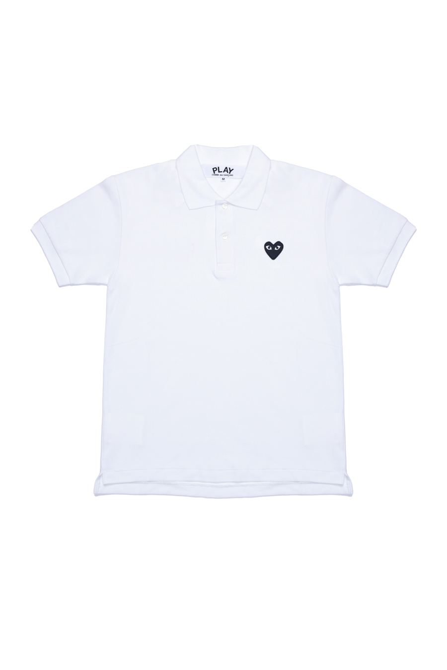 White classic polo shirt from Comme Des Garçons Play. Featuring signature heart logo patch in black, classic collar, and short sleeves